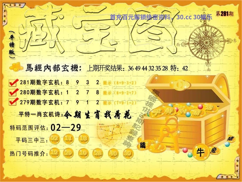 283期平特藏宝玄机:【牛龙蛇狗定中奖】